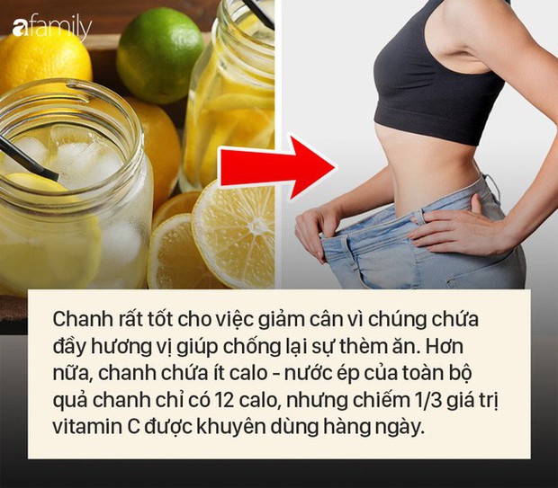 Chanh rất tốt cho việc giảm cân vì chúng chứa đầy hương vị, nhưng may mắn không phải là calo – nước ép của toàn bộ quả chanh chỉ có 12 calo, nhưng chiếm 1/3 giá trị vitamin C được khuyên dùng hàng ngày. Nhưng chỉ uống nước chanh không phải là chế độ ăn kiêng mà nó chỉ hỗ trợ giảm cân nhờ khả năng chống lại cơn thèm ăn, cũng như giải độc gan.